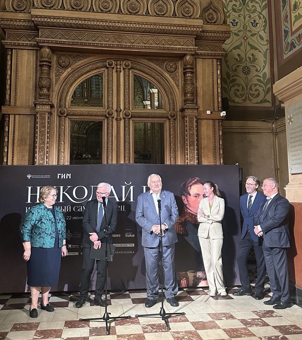 После всех вчерашних дел в Государственной Думе и «Единой России», рад был посетить Государственный исторический музей, участвовать и выступать на открытии выставки «Николай I. Идеальный самодержец». Был парад выпускников Исторического факультета МГУ: открывал выставку мой сокурсник и друг, директор ГИМа Алексей Левыкин, выступал выпускник истфака Степан Орлов, зампред Мосгордумы, присутствовала Оля Дмитриева, заместитель директора Музеев Московского Кремля, учившаяся вместе с нами и Еленой Гагариной, своей начальницей, на одном курсе.