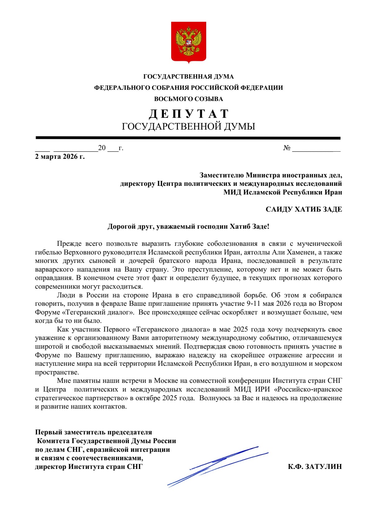 На другом ресурсе уважаемый Юрий Баранчик зря пустился в конспирологию по поводу того, к чему приведет руководство ИРИ развитие событий. Преждевременно, на мой взгляд. Со своей стороны, счел долгом направить письмо заместителю Министра иностранных дел Ирана Саиду ХатибЗаде, подтвердив готовность откликнуться на его февральское приглашение принять участие во Втором международном форуме «Тегеранский диалог» в мае этого года. Что бы не произошло, коллеги в Тегеране должны знать, что мы продолжим с ними сотрудничать. А рассуждения «а если» сейчас для меня не главное.