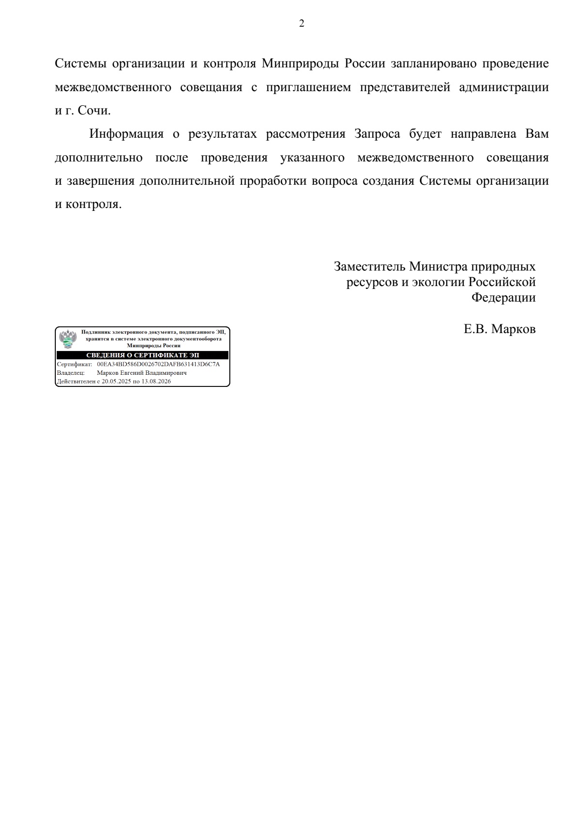 «В настоящий момент консолидированная позиция указанных ведомств и Минприроды России по данному вопросу не выработана, кроме того Рослесхозом указано на целесообразность привлечения к рассмотрению вопроса администрации г. Сочи».