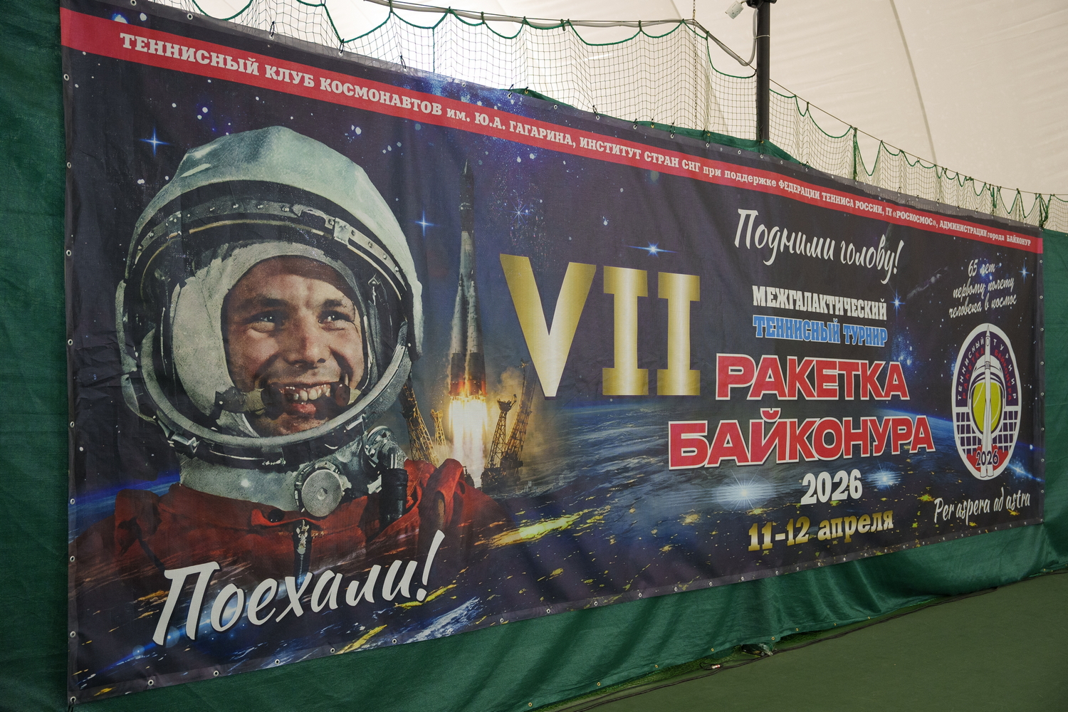 В День космонавтики 12 апреля в Национальном теннисном центре Федерации тенниса России завершился двухдневный VII «Межгалактический» теннисный турнир «Ракетка Байконура – 2026», который собрал рекордное количество участников. Около 70 любителей тенниса из Москвы, Байконура, Севастополя, Сочи, Рязани, Саранска и других городов, среди которых были летчики-космонавты (Сергей Крикалев, Муса Манаров, Сергей Трещев, Сергей Залетин), звезды театра и кино (Александр Пашутин, Александр Балуев), политики, генералы и офицеры, журналисты, предприниматели, посвятили пасхальные дни спорту и дружбе в Неделю космоса, объявленную Президентом Российской Федерации. По традиции турнира «Ракетка Байконура», впервые состоявшегося на космодроме в 2012 году.