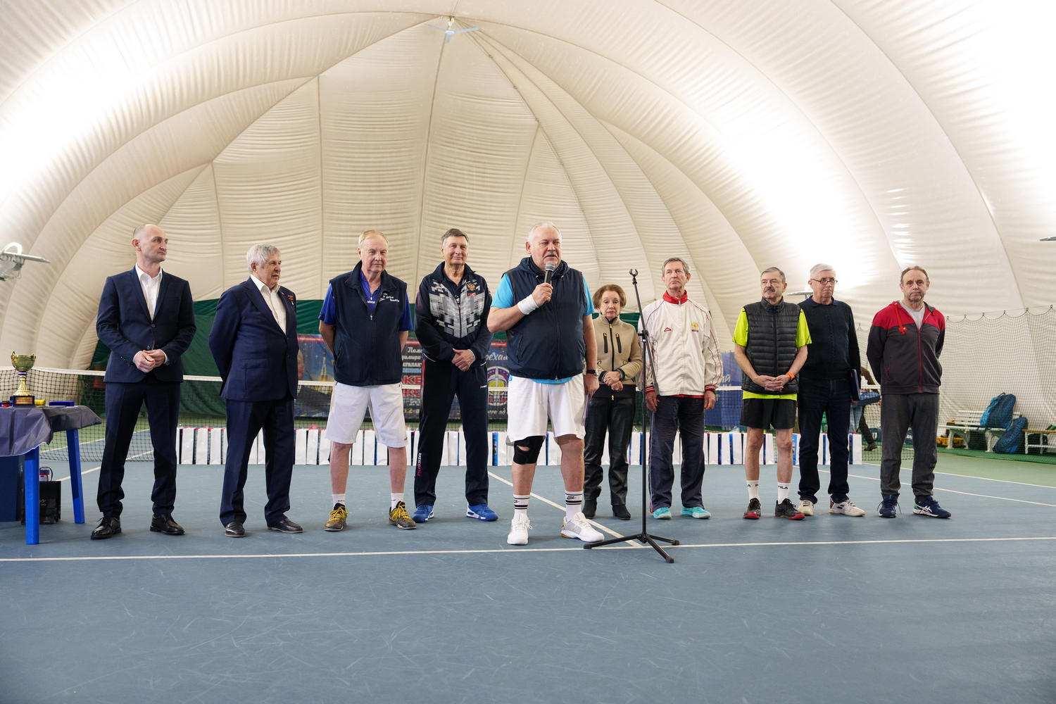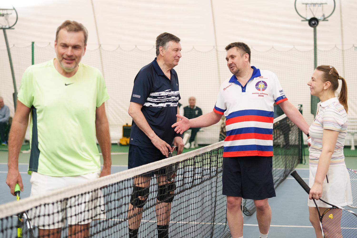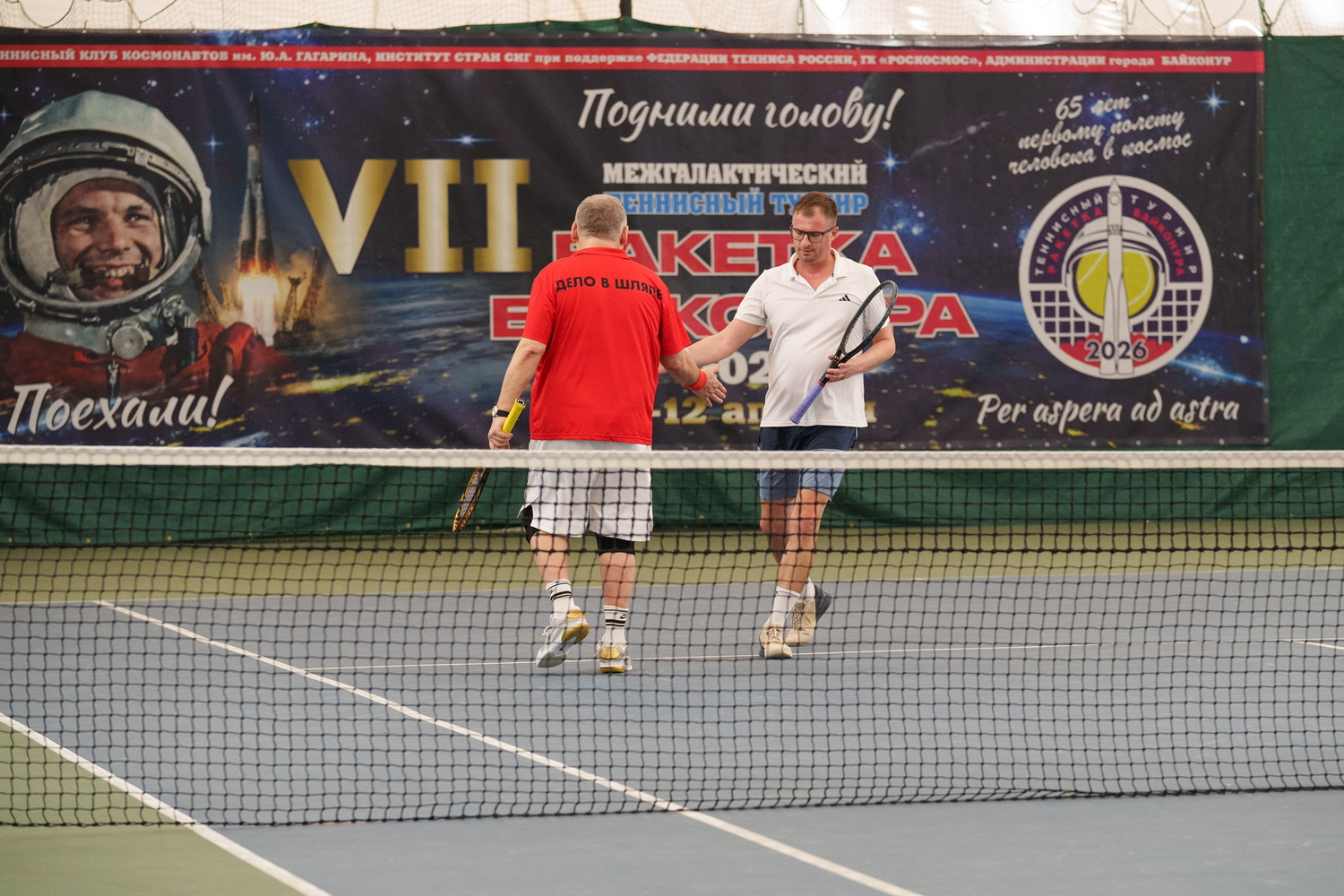 Турнир был посвящен памяти бывшего президента Федерации тенниса Байконура, заслуженного испытателя космодрома, генерал-майора Владимира Томчука, ушедшего из жизни в канун Нового 2026 года. С приветственным словом к участникам обратились Президент Федерации тенниса Шамиль Тарпищев, Дважды Герой Советского Союза, летчик-космонавт СССР Виктор Савиных – член Теннисного клуба космонавтов, в этот раз бывший почетным гостем. А также доктор медицинский наук Римма Иванченкова, передавшая всем привет от Президента Теннисного клуба космонавтов, Дважды Героя Советского Союза Александра Иванченкова, накануне перенесшего плановую операцию. Заместитель Главы города Байконур Тимур Вербицкий вручил турниру Памятный кубок Администрации города Байконур. Минский часовой завод «Луч», накануне проведший презентацию новых часов «108 минут» в память о полете Юрия Гагарина, подарил всем участникам свои изделия.